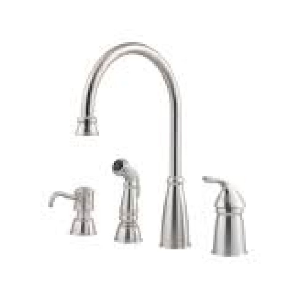 & Free ShippingPfister Avalon Kitchen Sink Faucet with Side Sprayer and Soap Dispenser, Single Handle, 4-Hole, High Arc, Stainless Steel Finish, GT264CBS